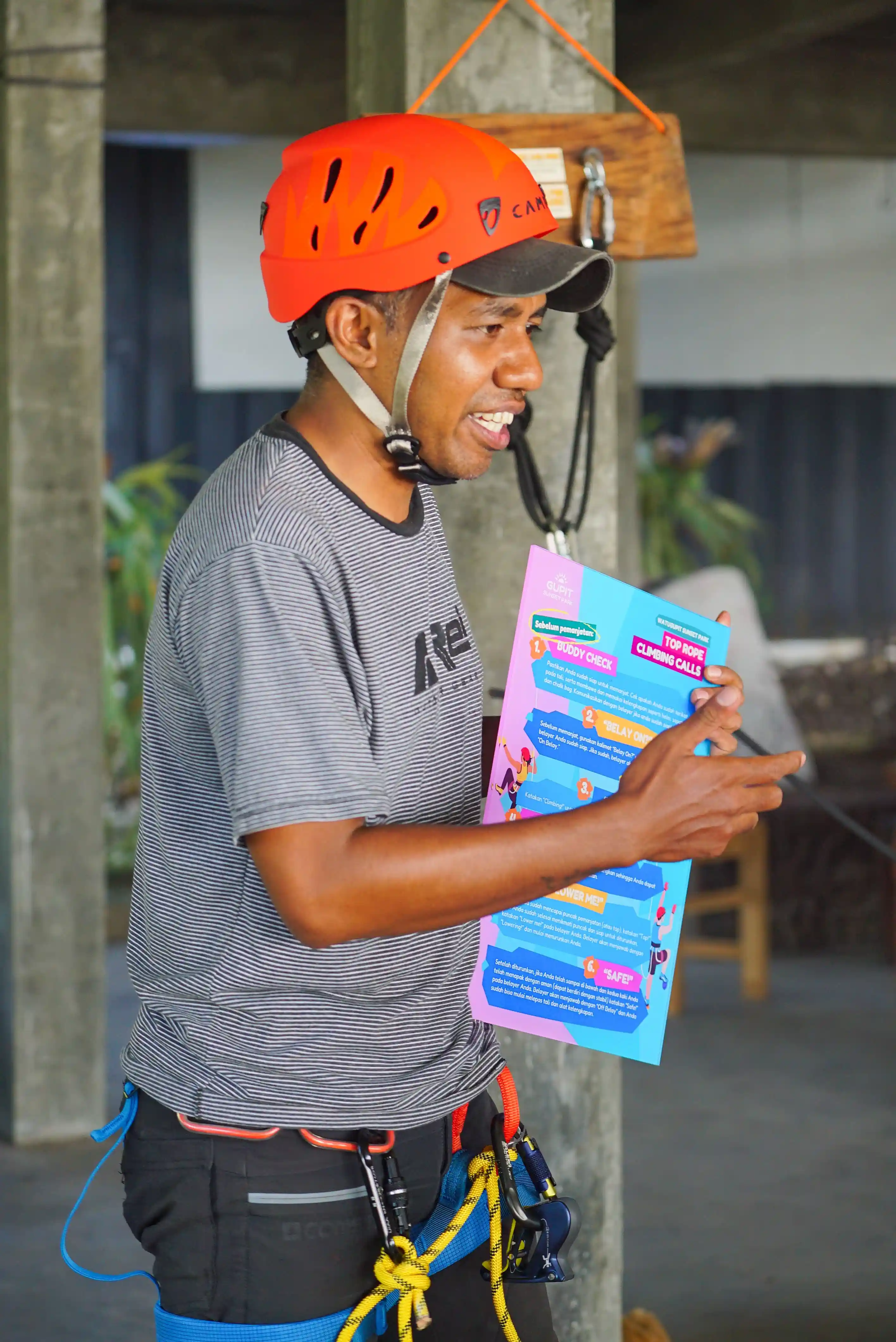Di Gupit Sunset Park, pengalaman Fun Rock Climbing bukan hanya sekadar memanjat tebing, tetapi perjalanan belajar yang menyenangkan dan aman untuk semua level, termasuk pemula.